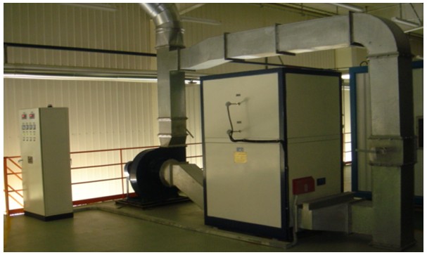 (9)利用催化燃燒余熱回用系統,將催化燃燒時產生的熱量根據業主的具體需求回收利用,如回用在給烘房提供熱量。達到真正意義上的“節能減排”循環經濟目的。